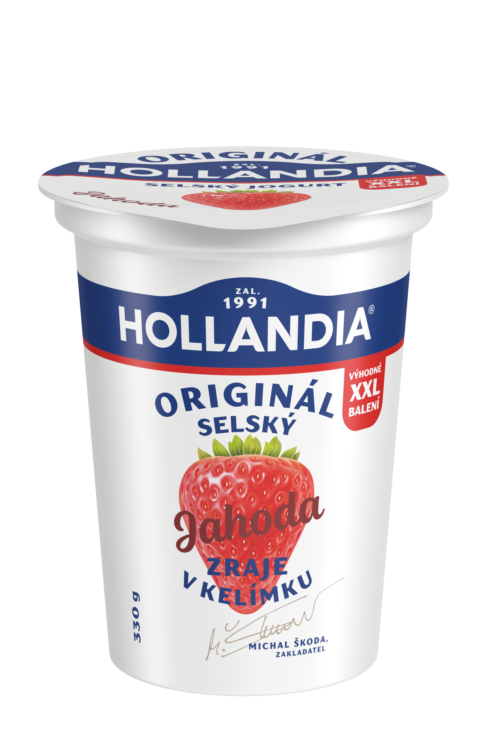 Selský jogurt vyráběný tradičním způsobem zrání mléka v obalu s přídavkem zdraví prospěšných bakterií Bifidobacterium a Lactobacillus acidophilus. Jahodová složka je 100% přírodní a z 55 % ji tvoří kousky jahod.